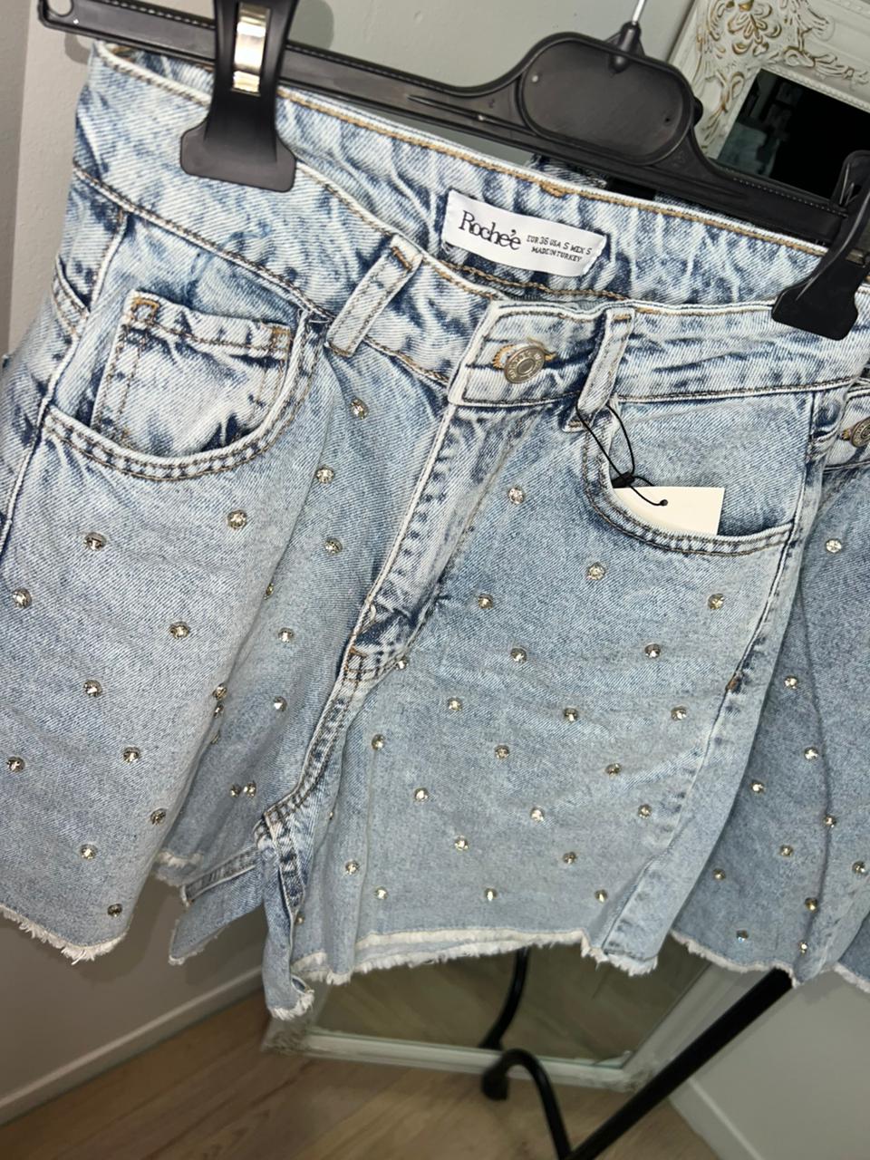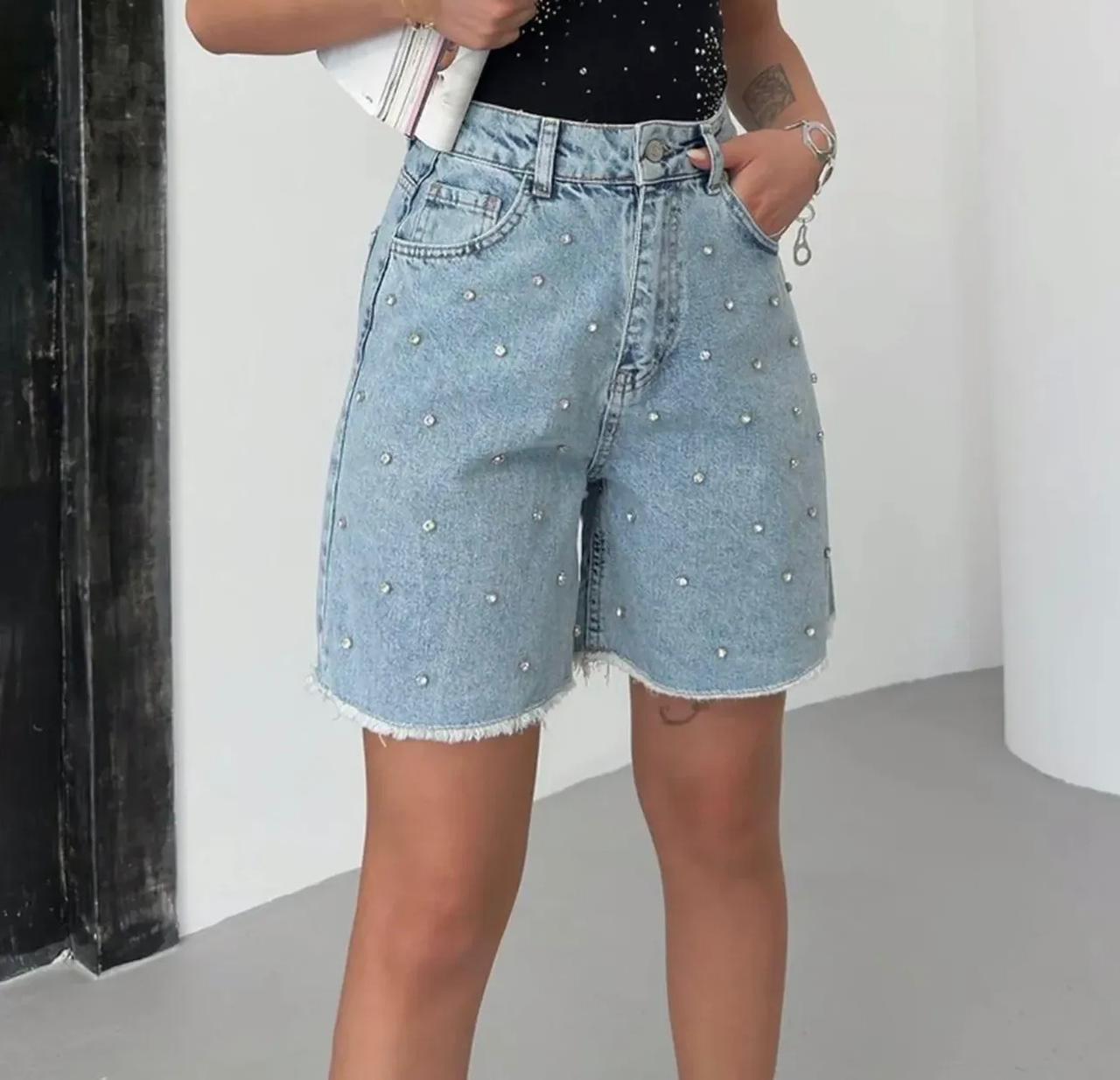 Ψηλόμεση Τζιν Βερμούδα με Στρας
